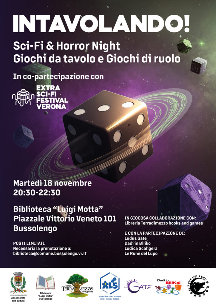 Biblioteca “Luigi Motta” (Bussolengo, VR) Una selezione dei migliori board & role games, tra novità, grandi classici e giochi premiati. Per appassionati di giochi da tavolo e giochi di ruolo, per amanti di brividi, viaggi nel tempo e nello spazio. Da un’idea della Biblioteca di Bussolengo, in gioiosa collaborazione con Libreria Terradimezzo books and games.